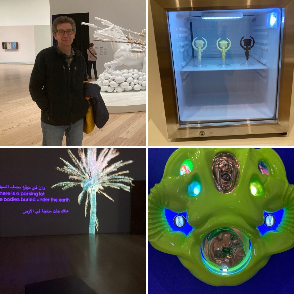 Busy and fun NYC day. First stop: a members preview (courtesy of my Uncle) of the Whitney Biennial, with edgy thought- provoking art from across the country. A few impressions of trends: big full-room installations with video and/or sculpture and sound. Lots of sound in general. Unusual materials (dried breast milk and semen in one work), Palestinian theme including a poignant video installation about displacement and longing to return. very small delicate work next to very large work.