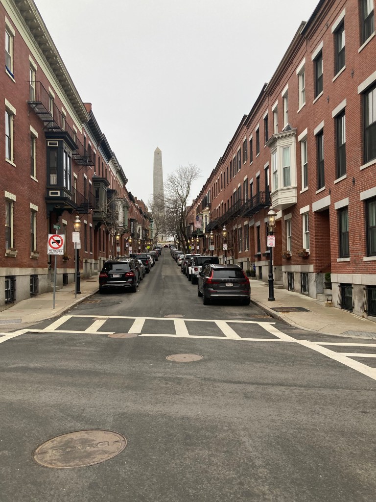 On to Charlestown which also has spruced up since my day, complete with an outpost of the excellent Tatte bakery on Warren Street where we had excellent hot chocolate and a morning bun. We were in the shadow of the towering Bunker Hill Monument with streets lined with attractive colonial-era- looking homes and alluring shops on Main Street that I wish I had time to explore.