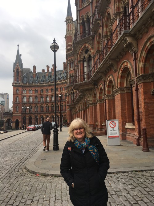 Onto the gorgeously revived St. Pancreas and Kings Cross stations, in a once grotty but now rapidly gentrifying North London chunk of Camden. Francine and I had a pricey shared Ploughmans at Betjeman Pub in St. Pancreas, named after the famous writer John B. who helped save St. Pancreas from demolition. I walked around nearby Granary Square, bordered by massive old dark brick industrial buildings that have been spiffed up and converted into an art college (with hipsters playing ping pong in an entry way with stories-high ceilings), fancy shops, an amazing looking Waitrose, of course, clever site specific sculpture and on the day I visited, a craft and food market. It seems like every time I visit London, I find another new dynamic neighborhood– and this at a time when Britons are heavy-hearted and deeply worried as the deadline for Brexit fast approaches.