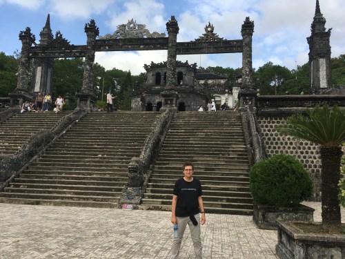 We visited three out of the way landmarks – the Thien Mu pagoda and two ornate tombs of emperors. My favorite was the black tomb of Minh Mang, perched high on a hilltop with ornate mosaics. The tomb of Khak Dinh was impressive too – more of a horizontal hugeness rather that vertical like Minh Mang.