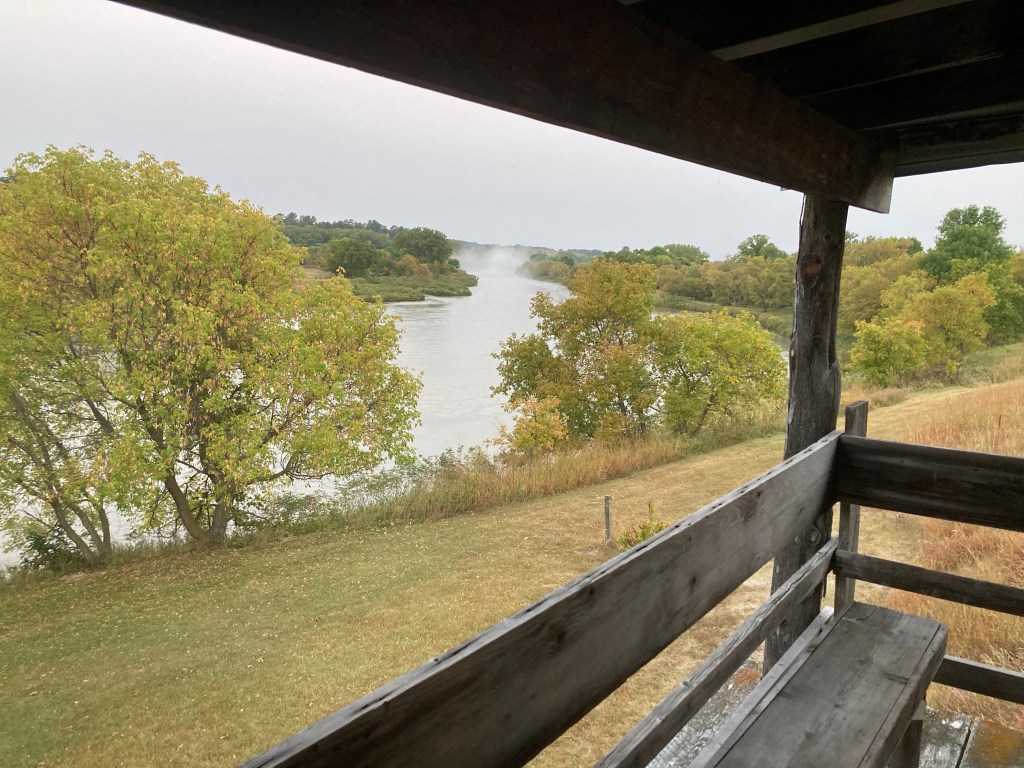 I may not walk straight for awhile and my knees, arms, shoulders and back ache after canoeing Nebraska’s premier river, the Niobrara for 7 hours. We put in at Cornell Bridge, passed the famous Smith Falls State Park (home of Nebraska’s highest falls – not Ithaca but still lovely) and ended at the cabinand outfitters where we are staying, SunnyBrook camp. The river was peaceful in most parts but we had to navigate some rocky rapids and got stuck on some sandbars and rocks. The weather began chilly, about 59, and gradually the sun won its battle with clouds and we think smoke from the western fires. The temps were in the low 70s, but lots of vigorous wind. I don’t think I can canoe without a seat back any more and sadly, the outfitter told me, way after the fact, that he had a seat Back I could have used. Next time we may try a double kayak. We were envious of their seats.