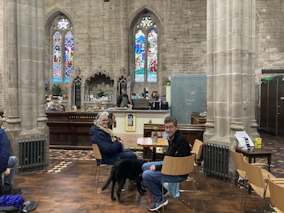Medieval church with a vicar/barista, Market, shops – Ludlow, England