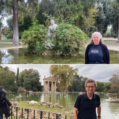 Resuming post on day 2: The rain finally came, the first significant rain of our 16 days here and even then, not heavy rain, and it didn’t come until 3 pm which gave us time to wander around the elegant Borghese Gardens and then down the Spanish steps (which neither of us had visited since we were students) and then down via Margutta which has some art galleries (none very good), outdoor gallery stalls and design shops.
