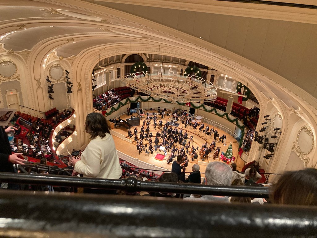 We got last minute seats to the Chicago Symphony Orchestra’s holiday concert which meant we were way up in the (top) sixth floor balcony, second to last row. I didn’t know symphony center went that high. Not ideal but we could at least see better from there than from the nosebleed seats at The Auditorium theatre, which is set back further from the stage so the members of The National (the band) were ant size (and the giant screen was mostly psychedelic art instead of the action on stage. Never again.)