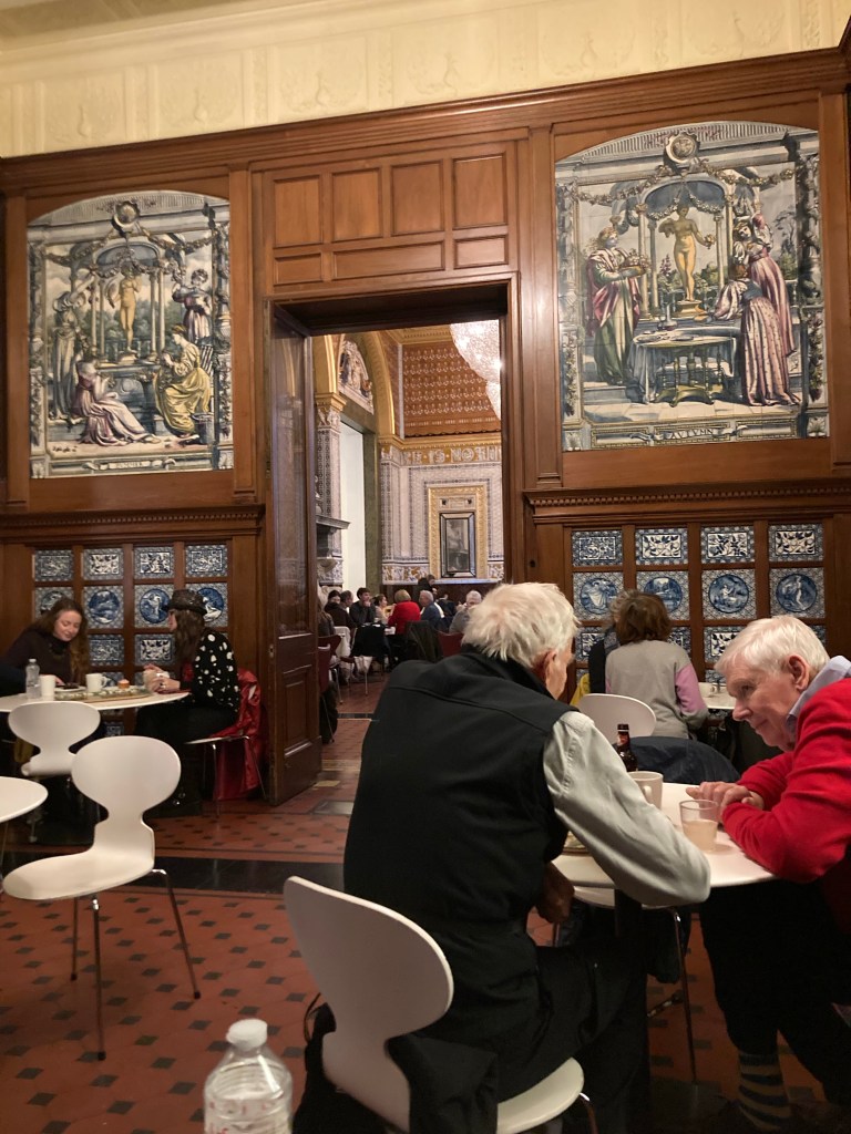 A dazzling exhibit on the couture and fashion influence of Marie Antoinette at the Victoria and Albert Museum turned out to be a perfect activity of a gloomy rainy day in London. We also enjoyed eating in one of the beautiful old tiled rooms of the cafeteria and cream tea in the members lounge with member Francine.