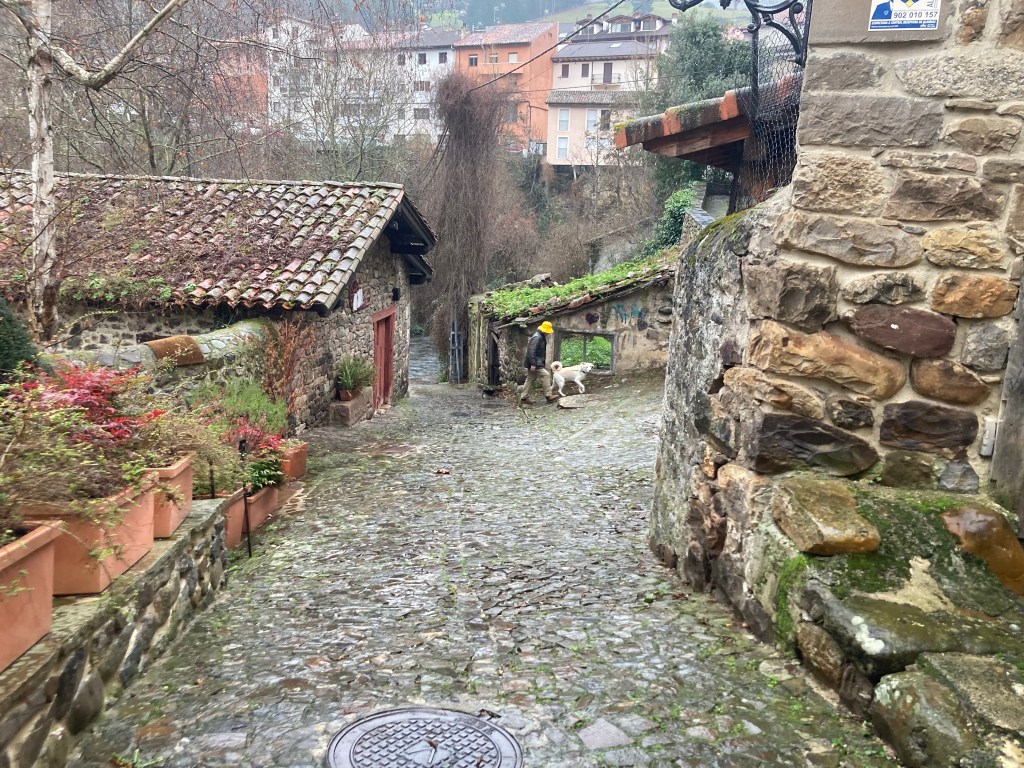 We drove on a rainy day through the tight mountain passes between the towering Picos de Europa, with high sheer cliffs of striated white and grey-blue stone, past the occasional charming rustic stone farmhouses, thick shaggy work horses, and lovely ancient villages.