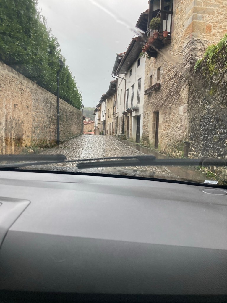Lunch was at el Castillo Del los locos, a little bar/cafe with glass walls looking out on the ocean. The view was the main attraction and an impressive one. We drive through the ancient town of Santillana Del Mar where we stayed in 1989 and it looked largely as I vaguely remembered, minus tourists or cows that were led through the main cobbled street when we visited. The town of Comillas also was charming and hope to return when the weather is more inviting for a stroll.