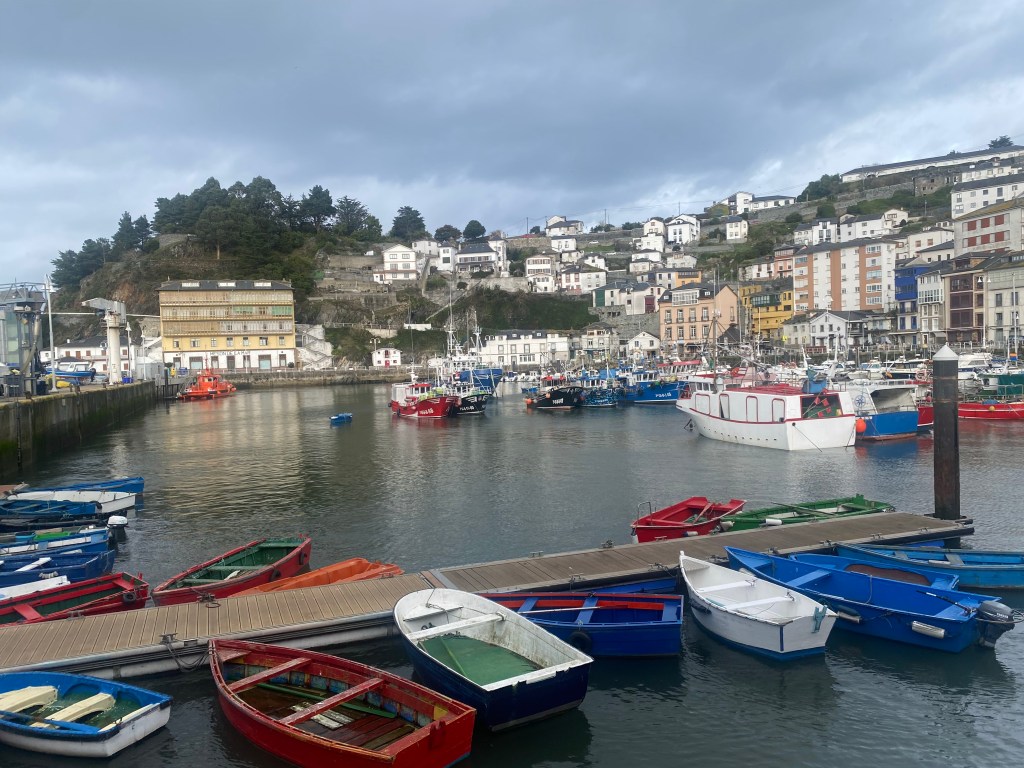 Luarca is the bigger of the two and we ate at a small charming seafood restaurant overlooking the harbor, La montenesa del muelle. There’s a gorgeous botanical garden atop a cliff between the harbor and the coast that wasn’t really open but we sloshed along a green grassy path past palm trees and pink and yellow camellia trees.
