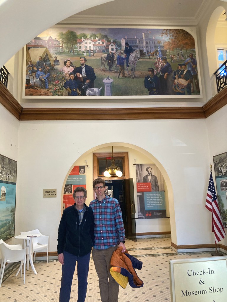 It’s a pretty stucco building on the grounds of a still functioning veteran soldiers home with several attractive buildings scattered on grounds atop a hill. Lincoln reportedly developed key ideas like the emancipation proclamation at the cottage. In the visitors center I learned about the President and his wife Mary Todd Lincoln’s grief as they lost 3 of their 4 sons way too soon. (ages 3, 11, 18)
