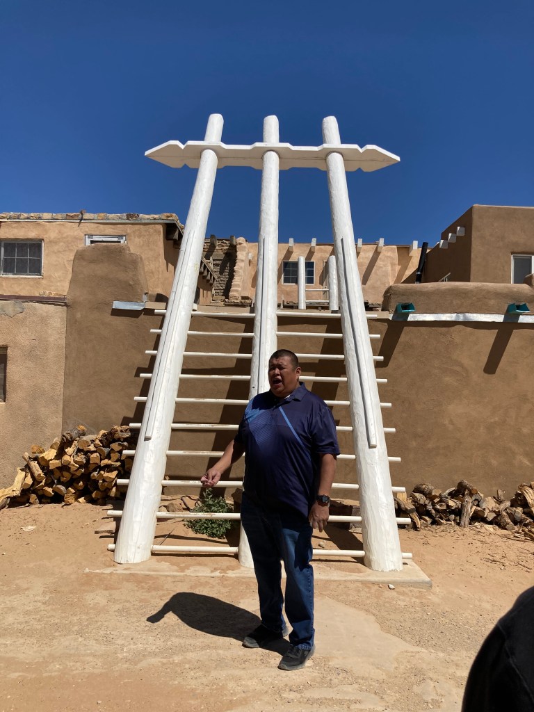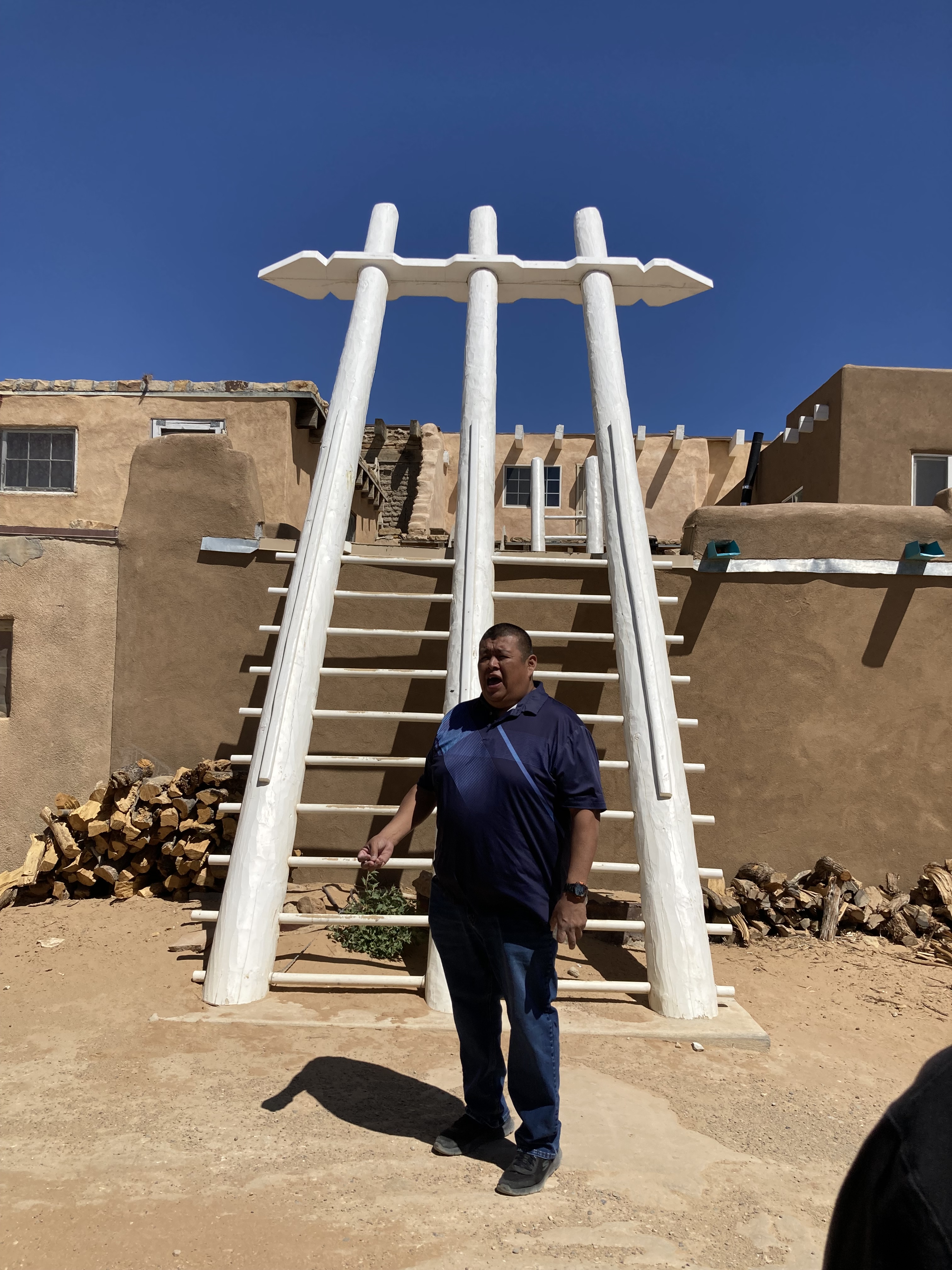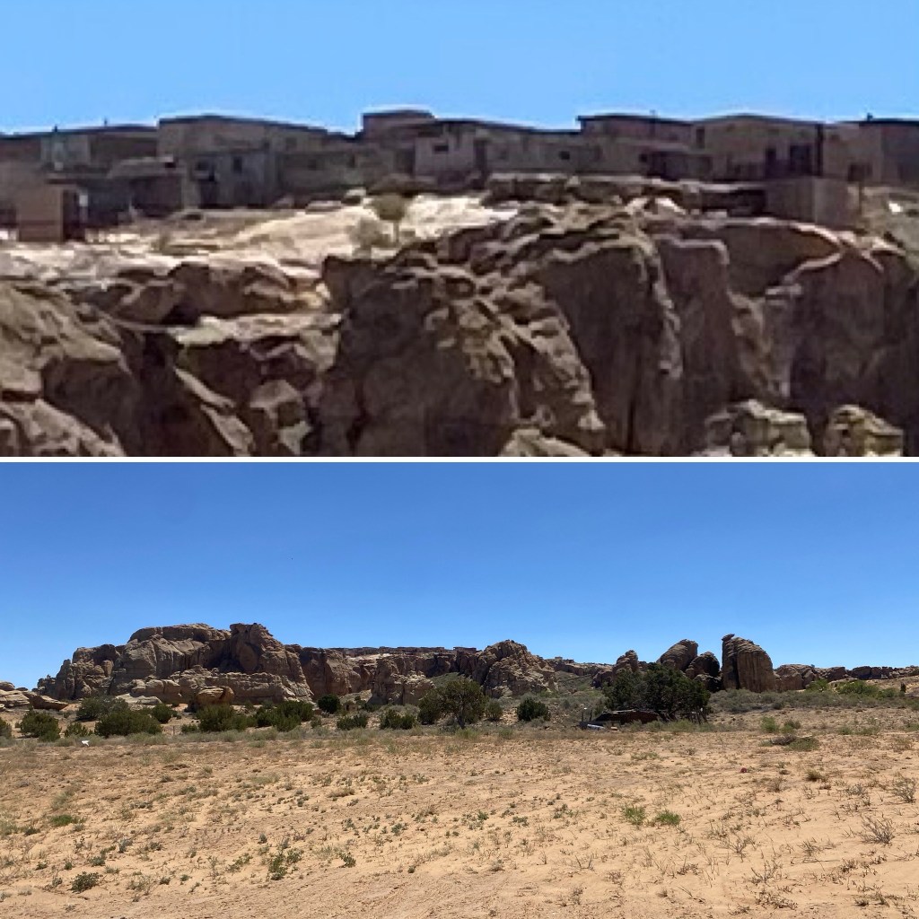 The stars finally aligned for us to tour Acoma, an ancient pueblo built on the top of a mesa, about an hour’s drive west of Albuquerque. The last time we tried to go in February 2022, it wasn’t open. From a photograph taken from the road, it’s had to make out the pueblo on the top of the mesa from a distance. Blends into the rugged southwest landscape like a camouflaged desert animal.