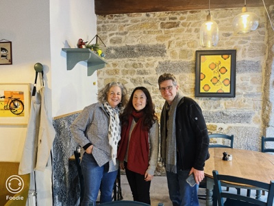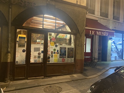 We joined locals in Arromanches (including our waiter from the hotel) at Mary Celeste pub in a cozy stone building, where the fellas drank beer and f & I drank hot chocolate. We introduced the Brits to the card game, hearts. And laughed a lot.