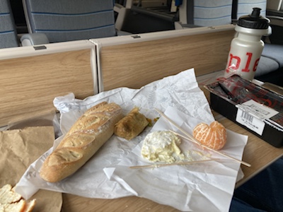 After a stressful rush hour taxi search and ride to the second train station (we arrived at gare du saint lazare and had to get to gare du nord)‘we are now safely on board the Eurostar in what we suspect are special”senior seats” back to London, playing hearts with a pack of 32 (not the standard 52 😳) cards F bought at the station. more laughter.
