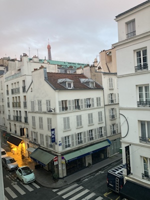 The rain we expected finally arrived the next day as we were leaving Normandy after one last breakfast in the hotel dining room with picture windows looking out on the waves crashing onto the shore, we drove to the Caen gare, dropped off our rental car at the Sixt office and stopped at Mollard, a classic brasserie in Paris circa 1867 for a late lunch in a gorgeous l’art nouveau dining room with wall and floor mosaics. I dared to eat dishes from my youth – steak tartare (my dad’s favorite) and crème caramel (my mom’s speciality). A little rich but delicious. (I couldn’t eat anywhere near the full tartare.)