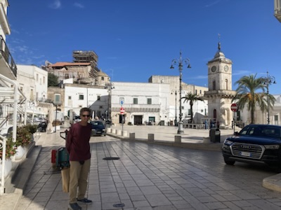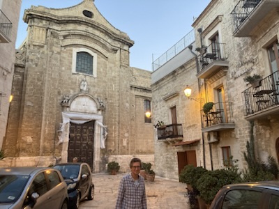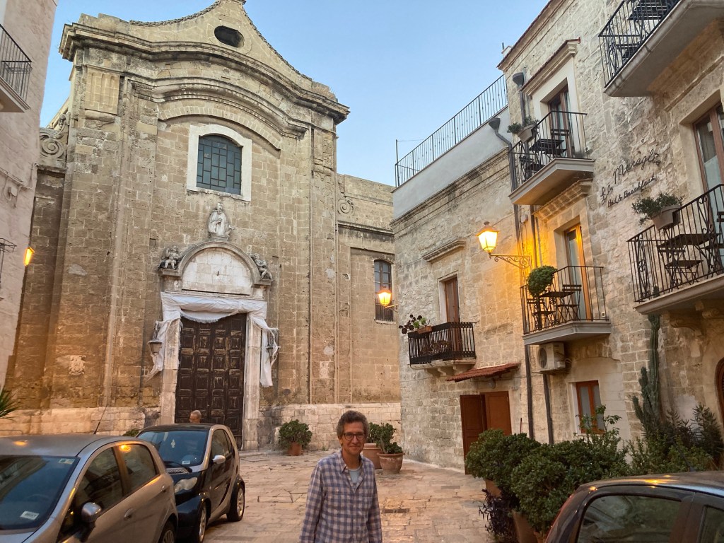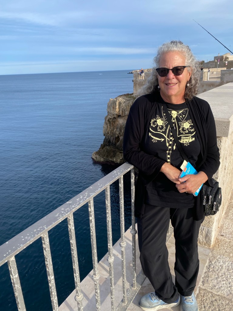 We drove to the Adriatic resort towns of Polignano a Mare and Monopoli but didn’t do them justice. We didn’t have the energy to navigate another city center. We did walk along the west end of the seaside walk in Polignano, above rocky cliffs with the occasional small speedboat with tourists looking at the cliffs from the water.