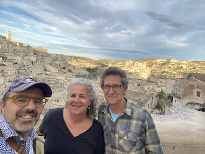 We ate well. Dinner on night one was at La Lopa, a fashionable spot which in addition to traditional fare has a clever movie reel in the bottom floor with highlights from movies shot here including the James Bond film “No Time to Die.” Our food was even better on night two at Osteria Belvedere al Vecchio Frantoio, a less fashionable but welcoming traditional trattoria where we had superb fried zucchini flowers (which I have never made right) and a matera version of lasagne, light on the cheese but featuring eggplant, tiny meatballs and little slices of salami. Really delicious.
