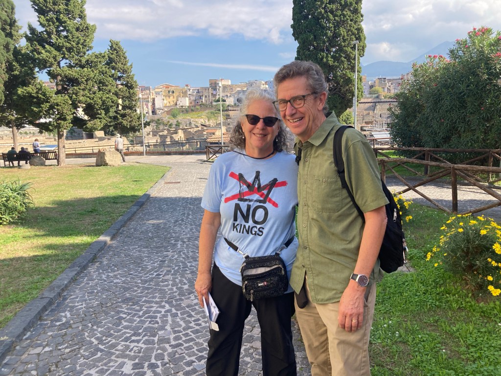 Getting to the ancient ruin of Herculaneum was fairly easy: metro line one to Garibaldi and then the rickety (as promised) circumventa train to Ercolano (Italian spelling) Scavi stop. (Rick Steves gave us a rare bum steer, writing that there were two Ercolano stops but no big deal, we backtracked one stop.)