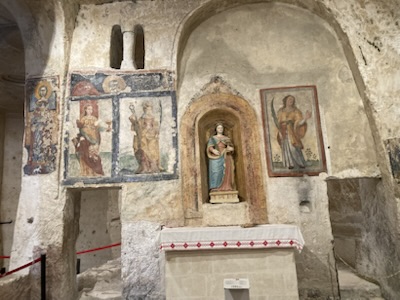 I found our great guides from a story about Matera that I happened to chance upon in the Financial Times. (I rarely see or read the FT so it was fated that I find these guides!) Silvio took us to various highlights including a beautiful ancient cave church (Santa Lucia alle Malve) that still has some bright ancient murals painted on stone walls.