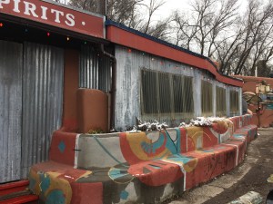 Two of the places we would have visited are closed on Tuesdays — the crazy George RR Martin installation, Meow Wolf, and SITE, the new contemporary art museum at the railyard district. We ended up having coffee at Tesuque Market, an alternative hangout (that has become sort of a touchstone for me) and later a good Spanish lunch at La Boca near the Plaza. Oddly this is restaurant week in Santa Fe, when restaurants have price  fixe (i.e. slightly more reasonably priced) meals…to lure people. Des Moines’ is in August. We drove back to ABQ on the always stunning turquoise trail (highway 14) through Cerillos and Madrid but the scenery was even more dramatic with the snow and the clouds dropping snow in the distance over the mountains and the sun streaming through at the same time.