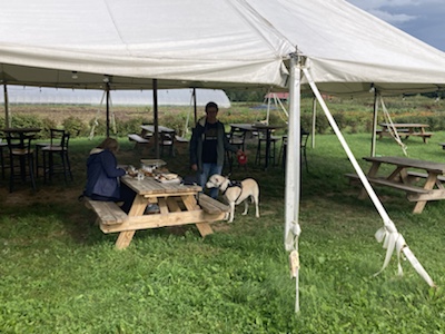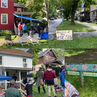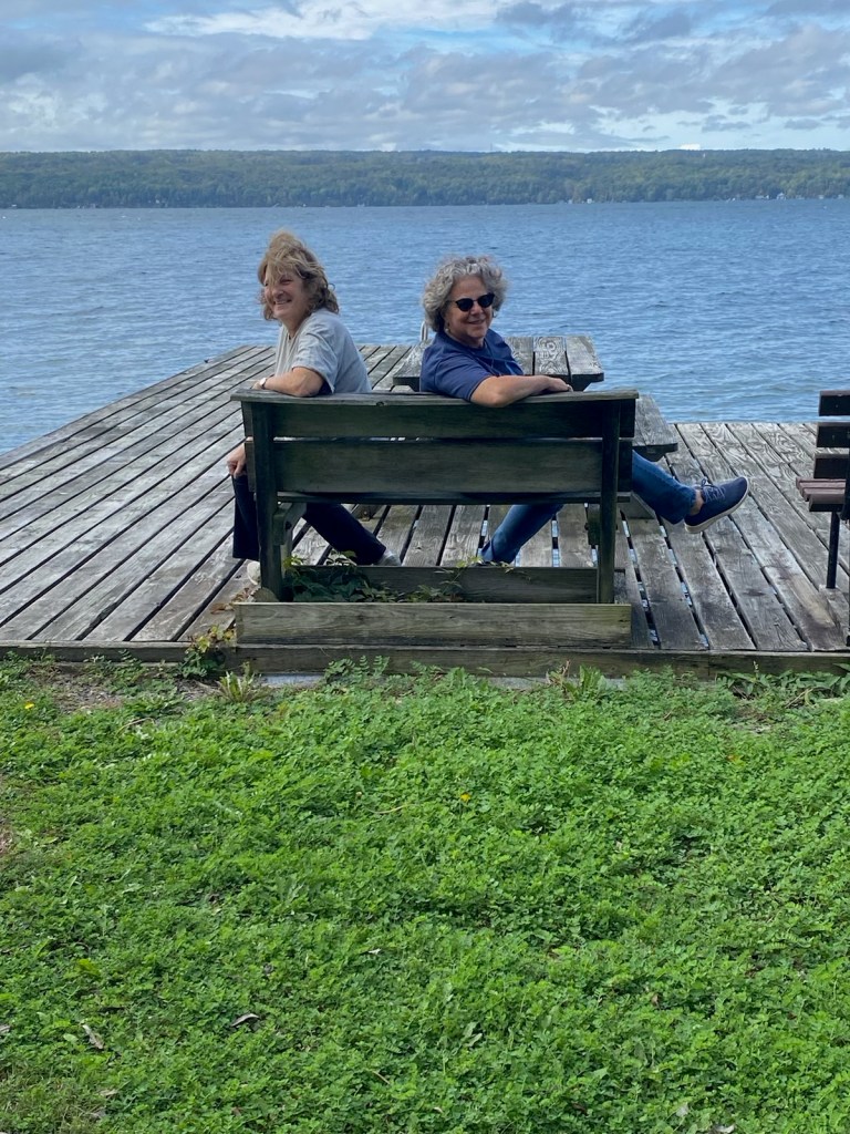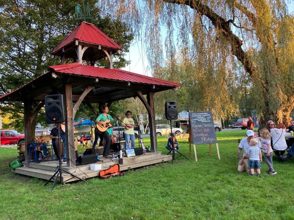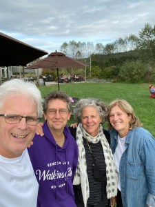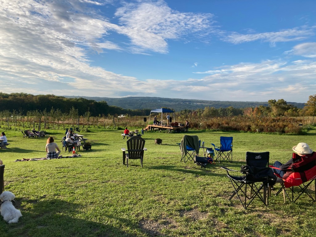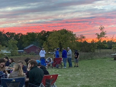 On the way back to Ithaca, we drove backroads along the western shore of Lake George which was lovely and rustic…until we got to the resort town of Lake George, which was over touristed. Then we drove diagonally south east, stopping briefly in the pretty college town of Cazenovia. We met Myra and Mike at Salt Point Brewery which was having an October fest celebration, with outdoor dining, a band, beer, pizza, brats and an amazing sunset.