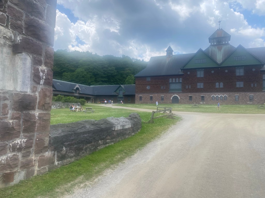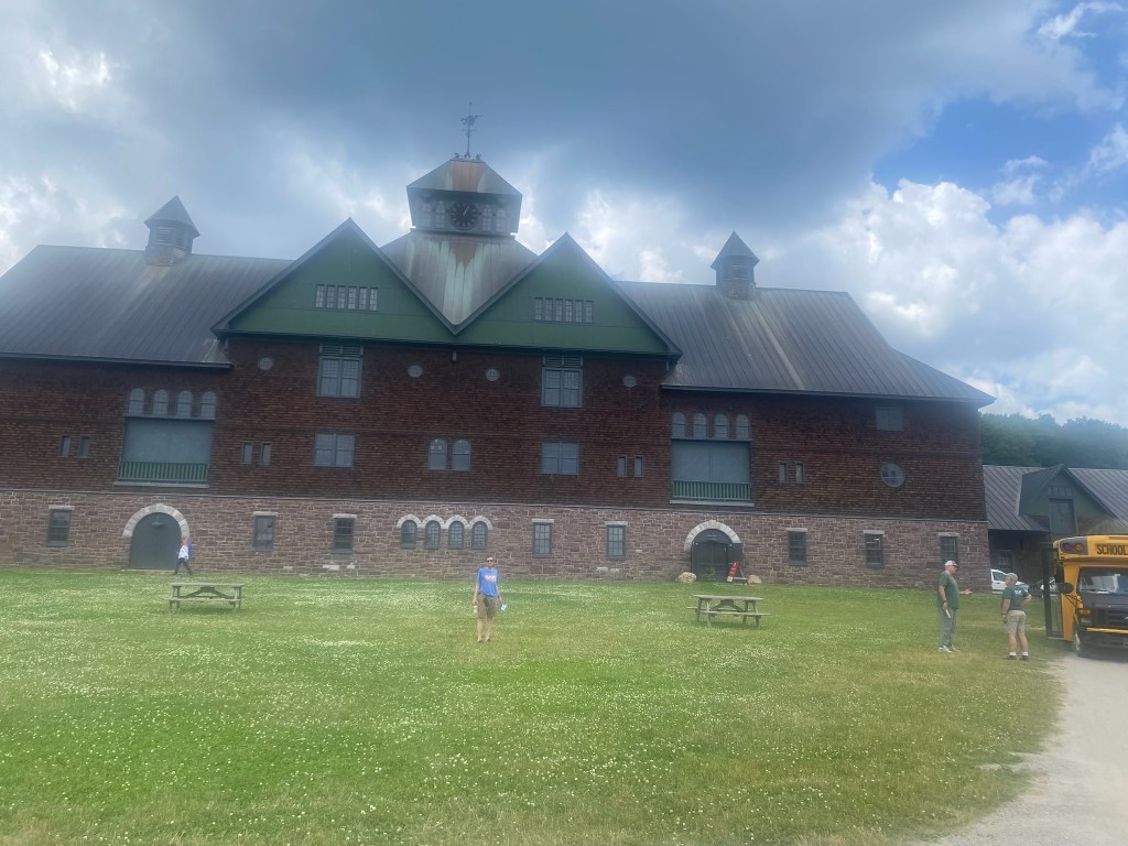 On our last day we braved Shelburne Farms, a historic farm south of Burlington with surprisingly grand buildings that barely resembled barns – lots of heavy brick, wood, and copper. After a half hour of heat, we got back on the bus for the drive across fields with hay being harvested to the parking area. Next time I’d like to get to the Shelburne museum and house with an inn and gardens. The photos I took are crazy, like something out of a Gothic movie.