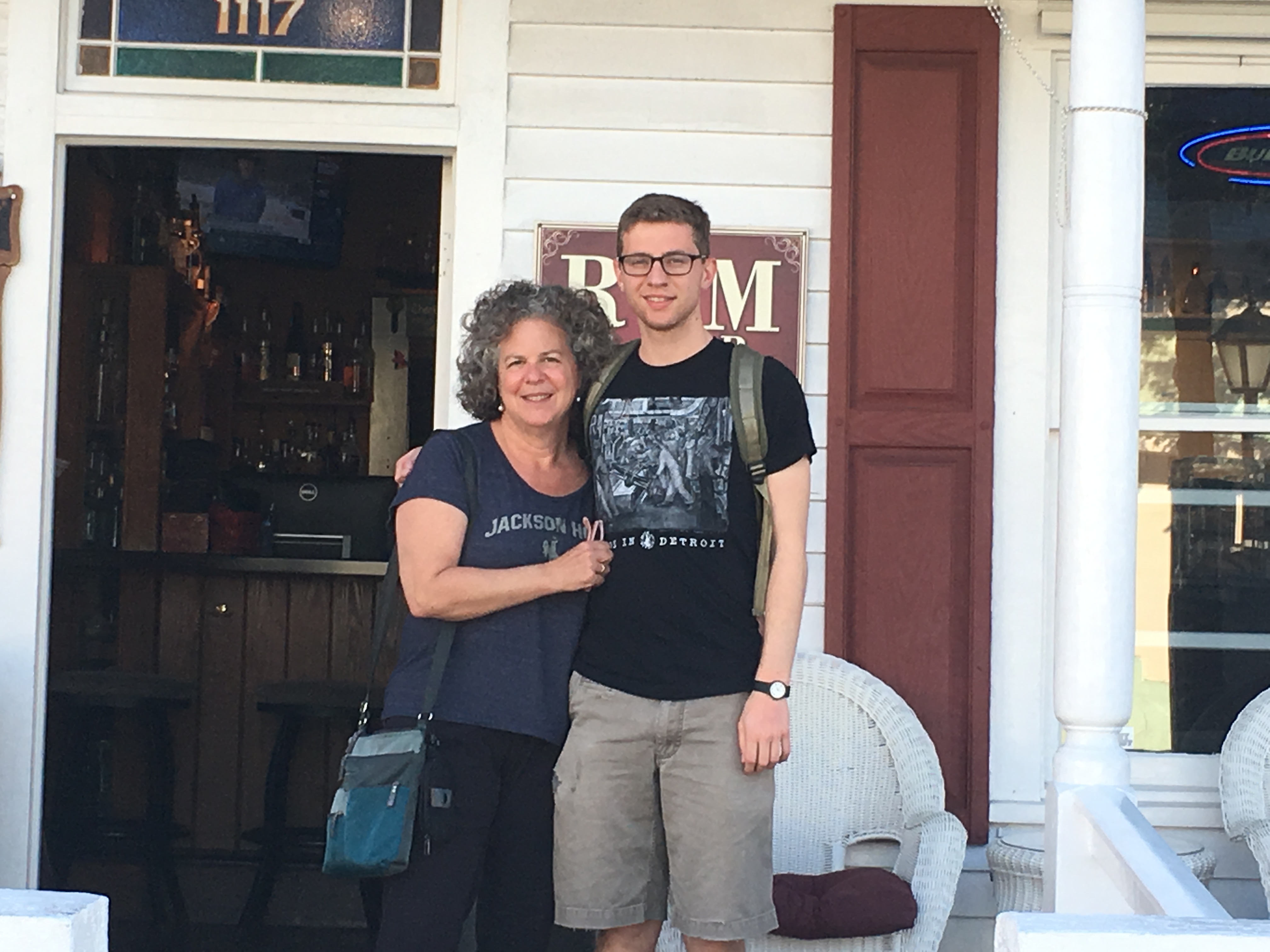 Back at The Speakeasy Inn, we tried some complimentary rum and fruit juice drinks. Not my thing ( I have stuck primarily to lemonade and limeade here, unlike most visitors, many of whom appeared drunk or buzzed as they walked by as as we sat on the front porch in white wicker chairs. EXcellent people watching, as promised.