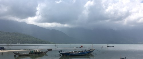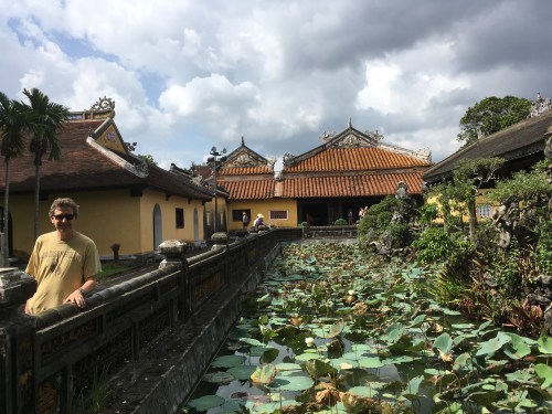 We arrived at the Halo Homestay on the edge of Hoi An at about 2 pm after a very scenic 2-3 hour drive from Hue, with the same driver we hired yesterday from our hotel, the excellent Hue Riverside Villa, a five room eco-conscious, well-designed place perched on the Perfume River in the old Imperial city of Hue. This morning, after a passion fruit pancake ( more of a crepe) for me and scrambled eggs for Dirck, we toured the massive citadel/ imperial city, a bit daunting in the heat with an achy ear. Then our driver took the scenic route to Hoi An over a mountain pass, with quick visits to a fish farm and a gorgeous lagoon and a drive past high rises and resorts in Danang that reminded us a bit of Miami.