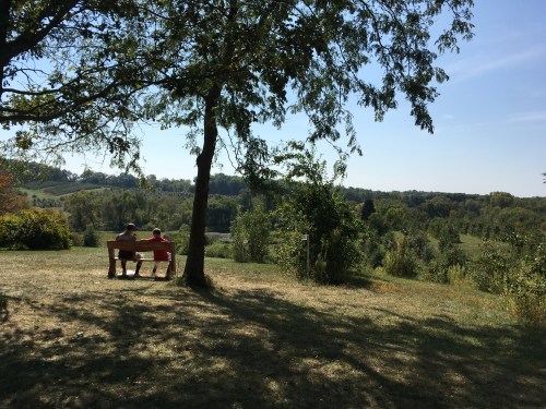 Considered experimental, back in the day, it was interesting to learn how the barn was laid out, like theater-in-the-round, for agriculture – apparently round barns were thought to make more sense space-wise than a more traditional barn, providing more storage and a circular layout so it’s easier to get to things than having to walk down long narrow corridors. This barn was part of a century farm, which means the same family has owned it for 100 years. The woman showing us around turned out to owner of a parked nearby with the Georgia plates. She and her husband live there and here, on the farm first owned by her grandfather (“he was a little forward-thinking” she replied when I asked if people thought he was crazy to build a round barn) and then her father (born the farm in 1916) and then her (born on the farm in 1941).