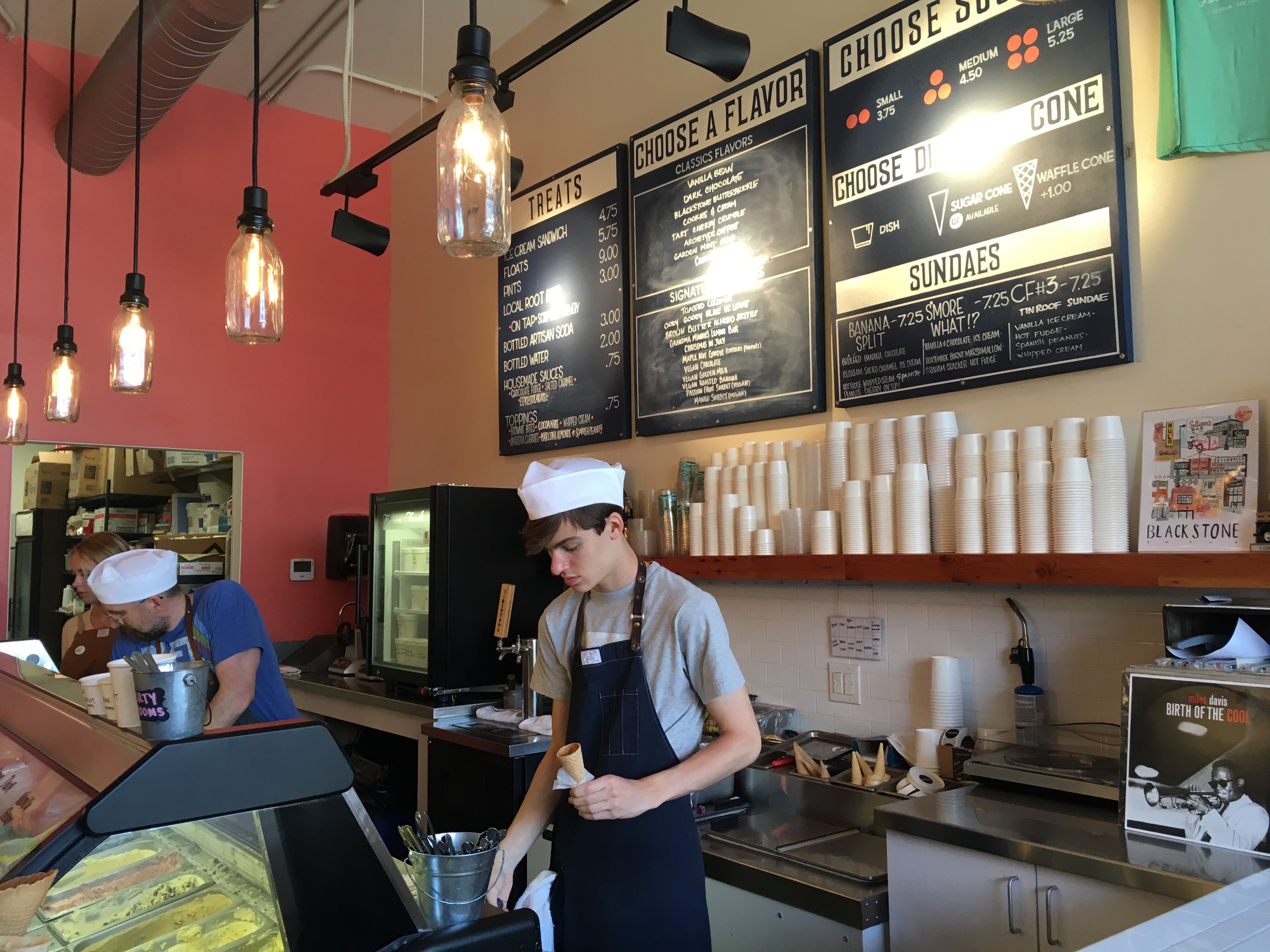 – Kansas City, Glace Artisan Ice Cream (peanut butter ice cream with swirl of strawberry jam…) and Succotash