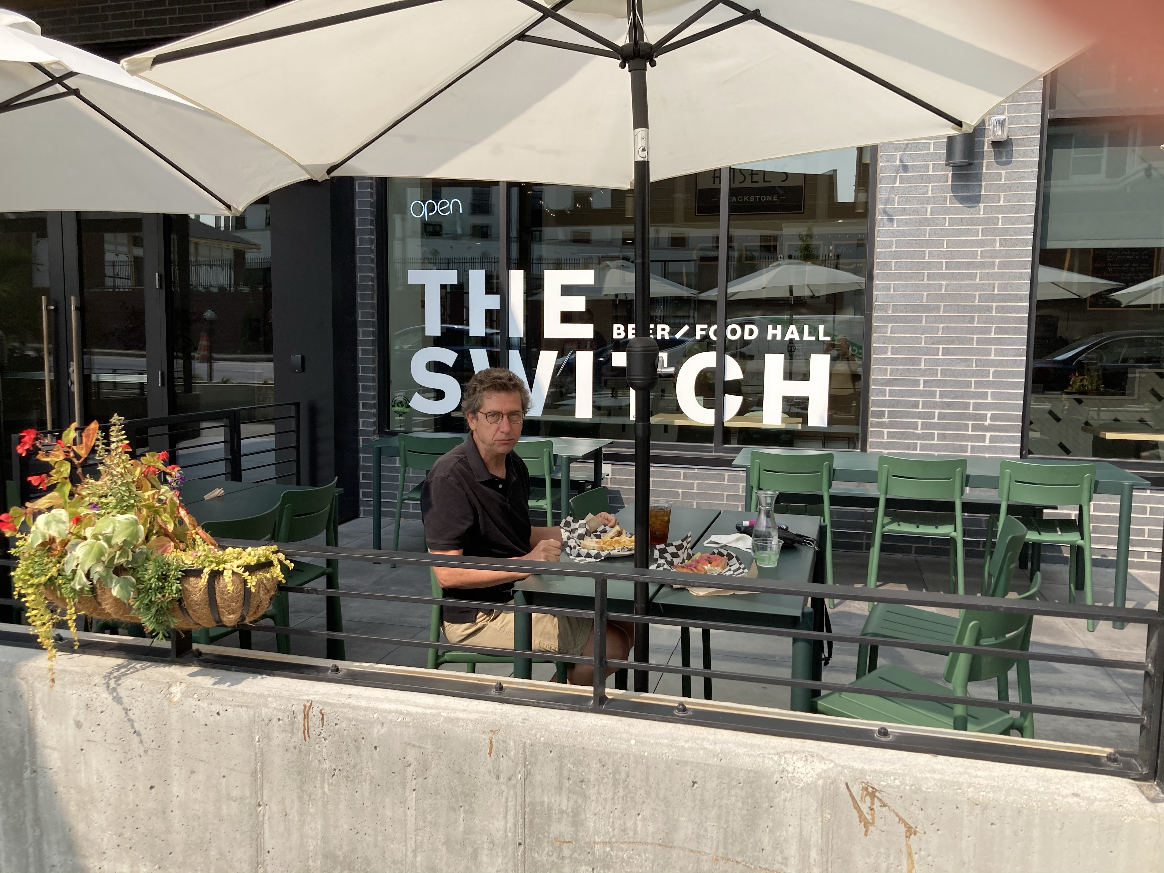 In Omaha’s Blackstone district, we had a quick dinner at Dirty Birds in The Switch Food Hall. The pastrami and bagel place we went in the Hall a few years ago had closed, sadly, but Dirty Birds did the trick, with ginormous fried chicken thigh sandwiches, served in various degrees of heat, with large dill pickle slices and crispy fries. We ended up splitting one sandwich and taking the other one home for two lunches. The place also turned out to be dog friendly so Millie joined us, charming young children and older customers but one young woman looked terrified when she suddenly encountered Millie. (Note to self: keep Millie on a short leash in these situations.) We’ve been pleasantly surprised at how many hotels, motels and restaurants are dog friendly. Millie even visited an antique store in Las Vegas, NM, although that was a little nerve wracking for us.