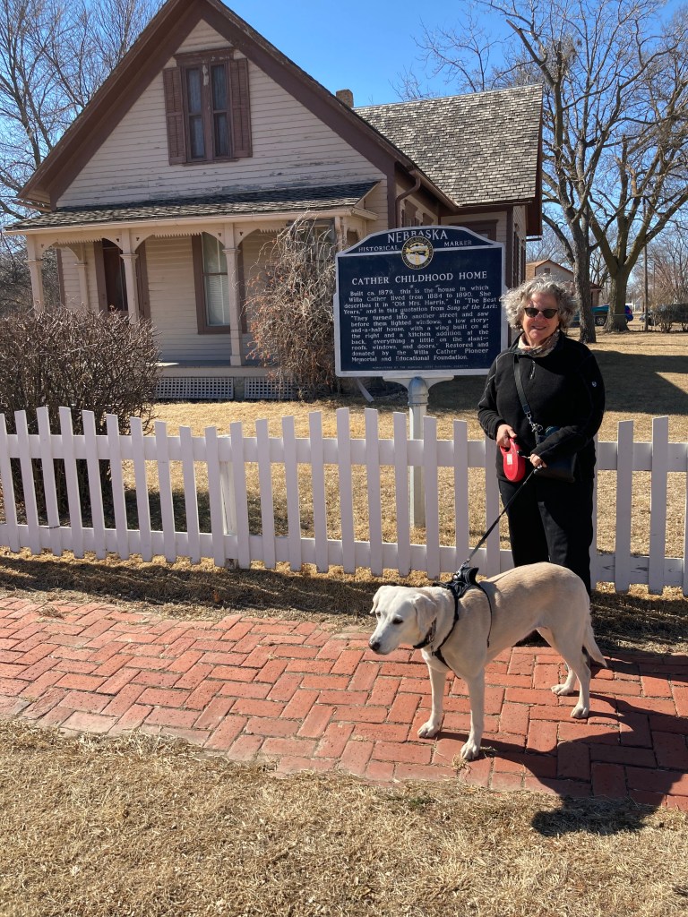 Unlike Nicodemus in Kansas, Willa Cather-land in the famous author’s hometown of Red Cloud, Nebraska is closed on Sundays. But we walked along the wide main street, paved with red bricks, peeking into the windows of the Visitors center and Willa Cather Foundation, Museum and archives. And we picnicked in a quiet town park across from Willa’s small unassuming childhood home, where she lived from about age 9 to 17 before hitting it big as a Pulitzer Prize-winning author and going on to live much of her life in New York City. It would have been nice to tour these buildings but just seeing the town on a peaceful day, with few other people around, and also driving on country roads through dormant yellow farm fields almost felt like being in one of Cather’s novels.
