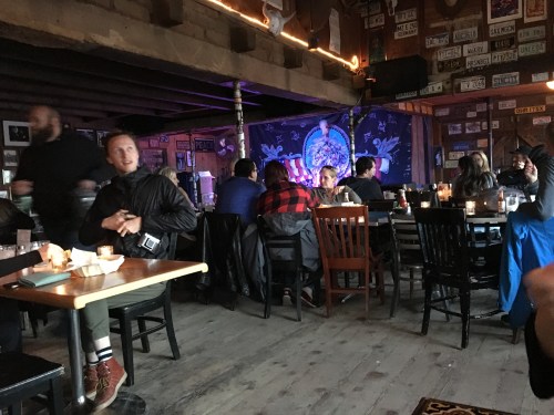Dinner was delicious ribs, steak, red rice and margaritas at Pappy and Harriet’s, a large ramshackle honky tonk place in Pioneertown, a strange forlorn community high in the mountains on a former film set for westerns.