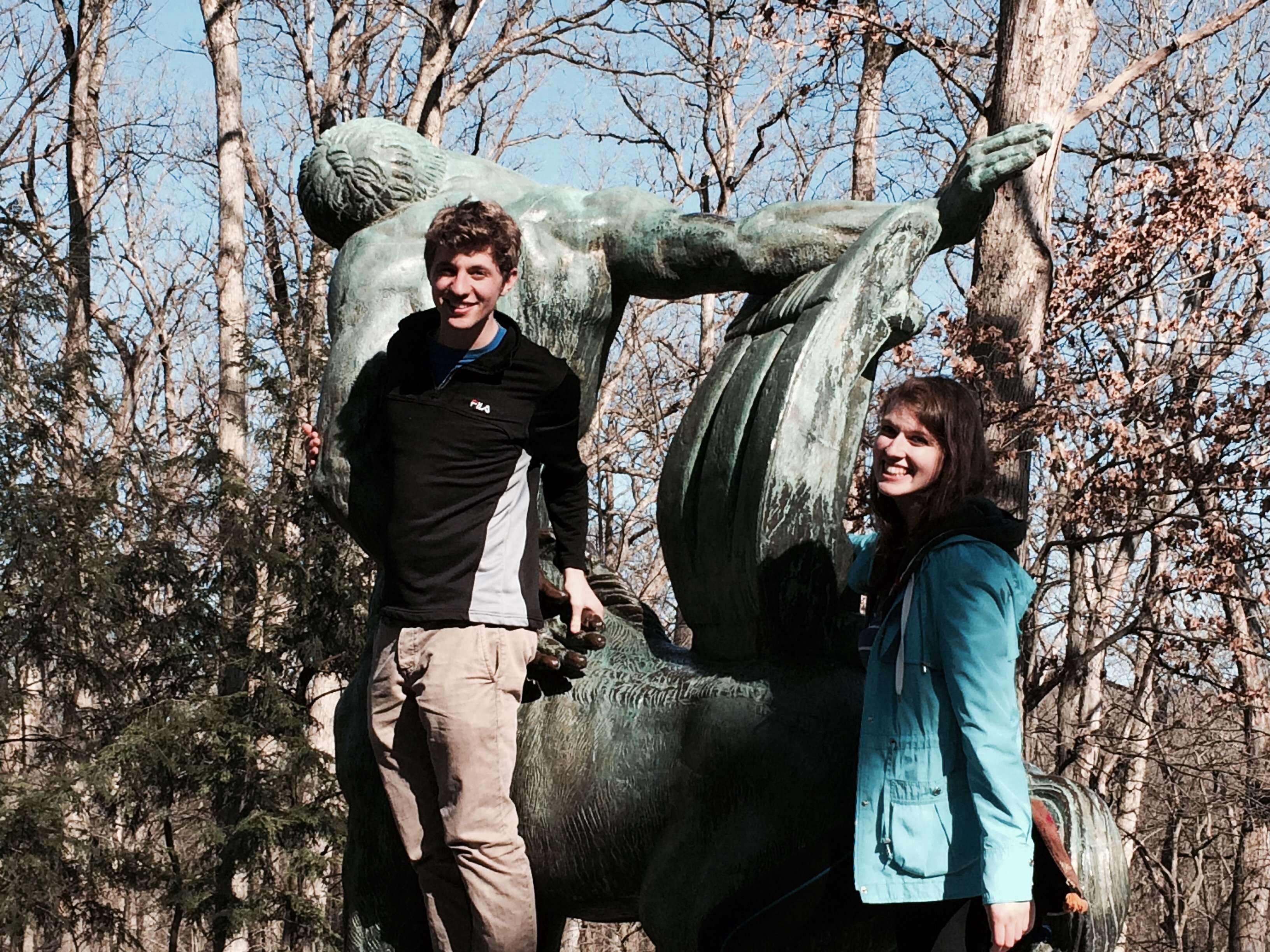 Allerton proved a lovely setting for a wedding, outside and in. The wedding was in a garden overlooking a small pond and a wooded hillside beyond as the sun started to drop. Inside, the festivities spread out across several elegant rooms including a two story library packed with old books, a main hall where Emma had spared no detail in decorating the tables with vintage travel items, orange and teal colors, and a handwritten letter in an old airmail envelope to each and every guest. She also had vintage postcards on a front desk for people to fill out if they wanted and toss into an old suitcase. We even watched the KC Royals win the World Series in the bar room! It was really nice to stay in the surprisingly spacious Gate House at Allerton after leaving the wedding at 1 am. And in the morning, we stumbled into another area of the manse for a goodbye breakfast.