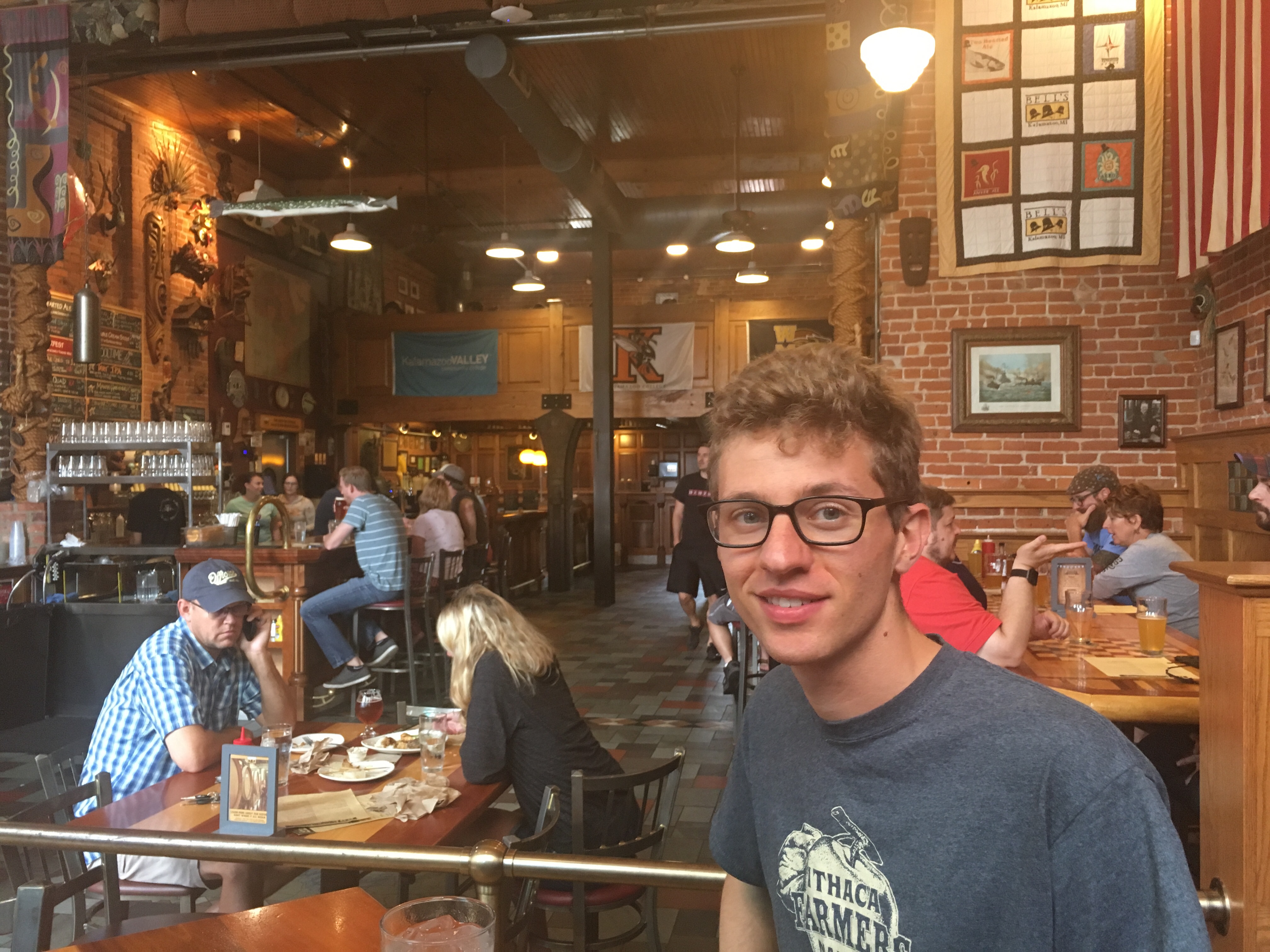 Why have I never been to Kalamazoo? I’ve passed it dozens of times while driving on I-94 driving between Chicago and Detroit, as we did yet again yesterday. This time we were hungry so we stopped at Bell’s Eccentric Cafe, home of the craft beer that is one of Dirck’s favorites. The cafe turned out to be in an old cavernous yellow brick building near the railroad tracks and was packed on a Sunday afternoon. We had a baby glass of beer, since we were driving, and Korean pork tacos and jambalaya. All good and a fun brew pub atmosphere. We also stopped in the gift shop to get a little something for Dirck.