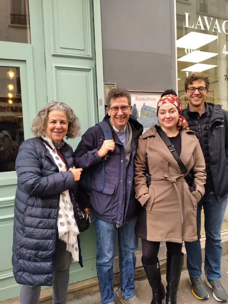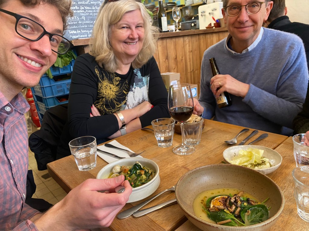After a stressful rush hour taxi search and ride to the second train station (we arrived at gare du saint lazare and had to get to gare du nord)‘we are now safely on board the Eurostar in what we suspect are special”senior seats” back to London, playing hearts with a pack of 32 (not the standard 52 😳) cards F bought at the station. more laughter.