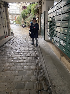 The rain we expected finally arrived the next day as we were leaving Normandy after one last breakfast in the hotel dining room with picture windows looking out on the waves crashing onto the shore, we drove to the Caen gare, dropped off our rental car at the Sixt office and stopped at Mollard, a classic brasserie in Paris circa 1867 for a late lunch in a gorgeous l’art nouveau dining room with wall and floor mosaics. I dared to eat dishes from my youth – steak tartare (my dad’s favorite) and crème caramel (my mom’s speciality). A little rich but delicious. (I couldn’t eat anywhere near the full tartare.)