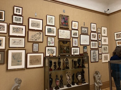 It may sound precious but it’s more ingenious and mysterious. After awhile I gave up trying to see everything or trying to figure out the thinking behind the odd juxtapositions and just let my eye wander to whatever caught my eye. Literally. Apparently I am a Rousseau and Modigliani fan. And folk art, which is no surprise.
