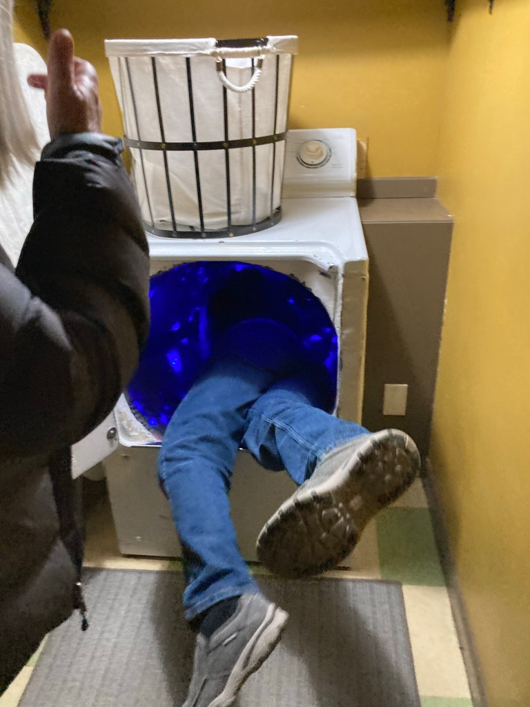 To people who have visited Meow Wolf, this text exchange will make sense. (It makes me laugh.) Otherwise, probably not. But where else can you open a clothes dryer, slide in and down, ending up in an alternative world? Or open a refrigerator, walk right in and through, entering another portal into to a fantasy land.