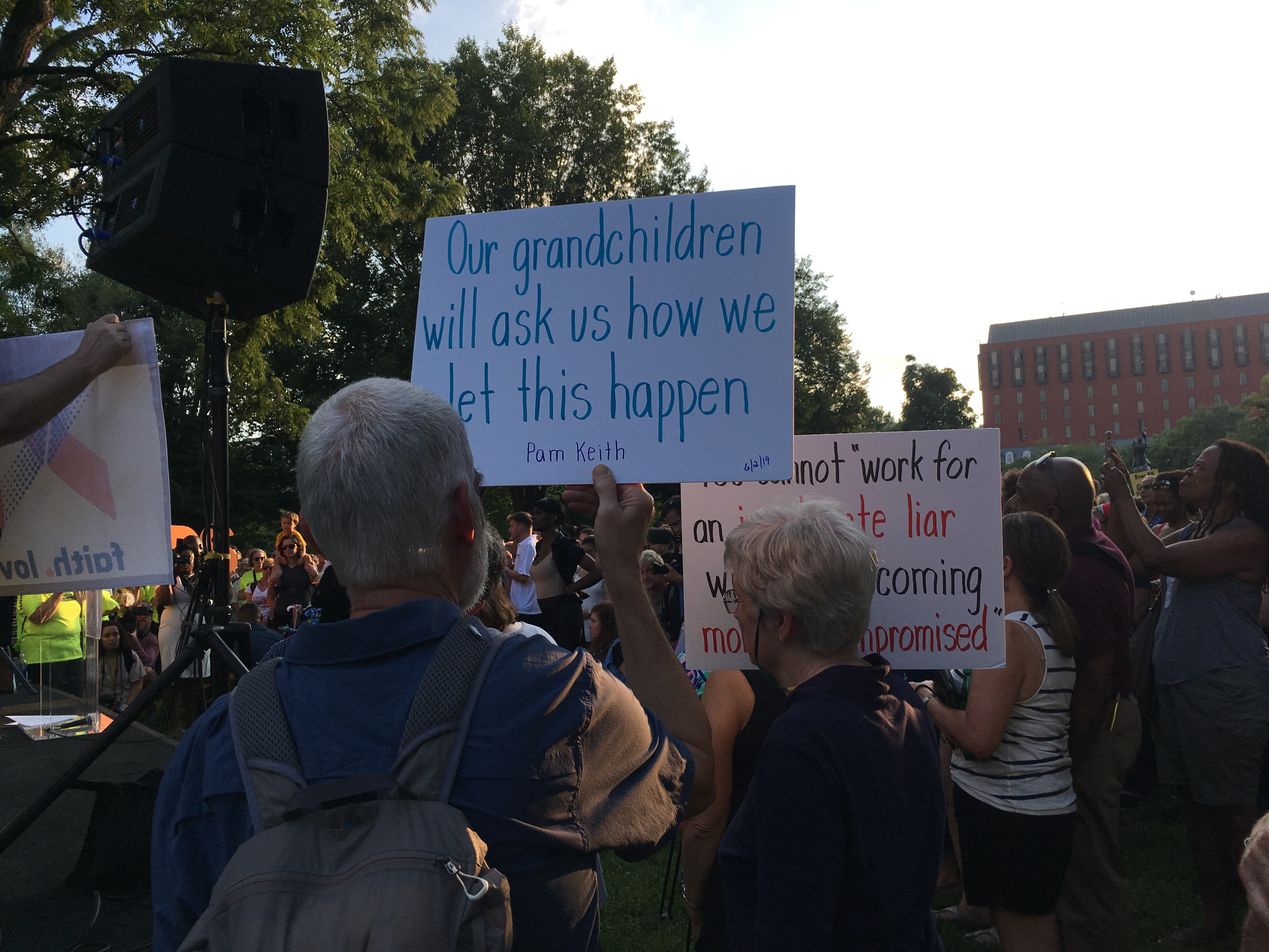 Plunged right into the thick of things here, soon after arriving in DC, by joining a gathering next to the impenetrable-looking White House to protest the current occupant’s harsh treatment of asylum seekers and migrants at the southern border, including the separation of children from their families and their placement in detention camps. The lights for Liberty rally wasn’t the Women’s March but a decent turnout and some good signs and impassioned speeches. Will it have any impact?