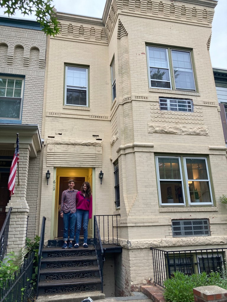We are staying at a great Airbnb on Otis and Holmead in Columbia Heights a few streets north of where Noah lived for several years. The neighborhood is still slowly gentrifying – our snazzy airbnb is one sign, an old brick storefront (we’re guessing) that is now a vertical townhouse with blond wood floors and contemporary furniture and a spacious rooftop deck where I’m lounging on a couch.