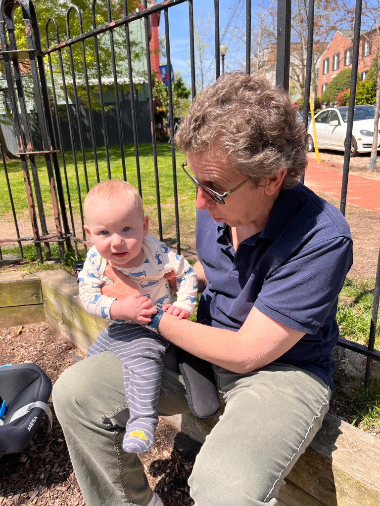 Another spectacular day of weather in the 70s, bright sunshine. We took the metro to Foggy Bottom and walked an easy 15 minutes to Georgetown (so there is a metro there, sort of) where we met up with the grandsons and their parents at a friendly little cafe called Feta and then went to a pretty playground Rose Park Tot lot. I had a surprisingly easy 15 minute scenic walk to DuPont circle for a working lunch at Sette Osteria with my literary agent (who just happens to be based here, as fate would have it.) and a quick browse and purchase at Kramers, which used to be Kramer Books and afterwards in the 80s.