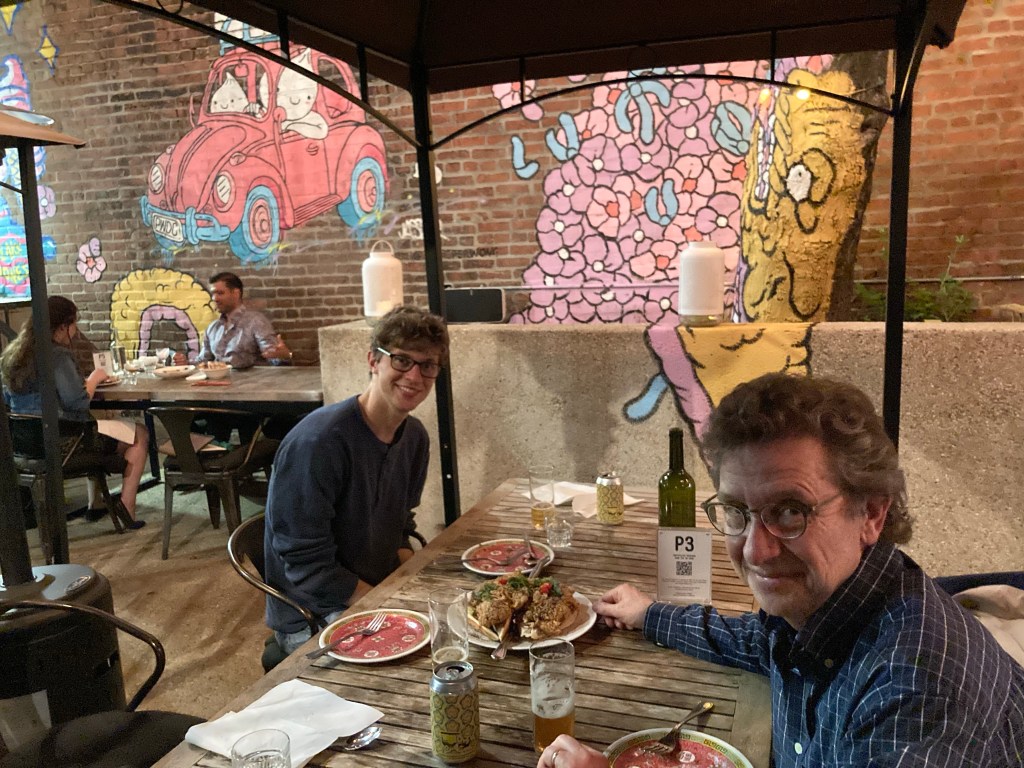After biking,dirck and I drove to Georgetown for a quick stop and purchase st the Allbirds (shoes) store, not far from a good burger place we got food from our first night called Good stuff Eatery. Dinner Was take out from a Chinese Korean place in Noah’s neighborhood called Chi Ko.